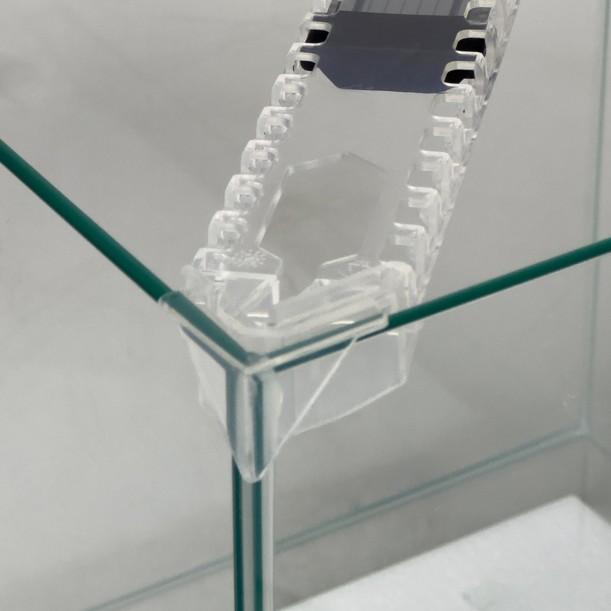 Белая стеклянная крышка. Элегантный дизайн, сочетающийся с общей эстетикой аквариума. Легко снимается для удобного обслуживания. Предотвращает испарение воды и выпрыгивание рыб.