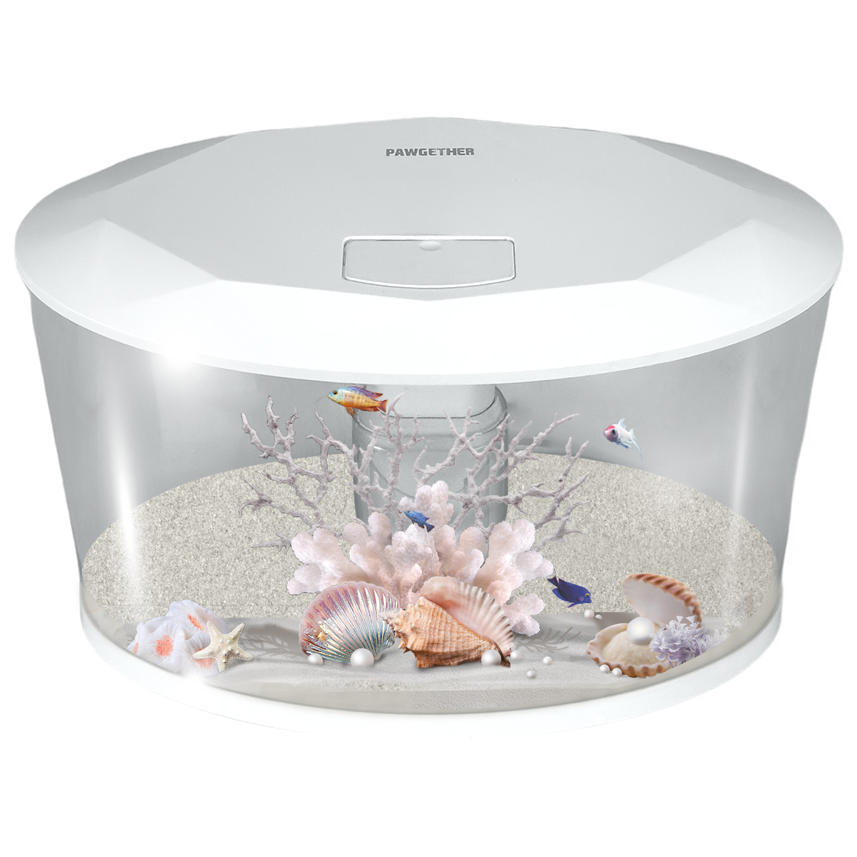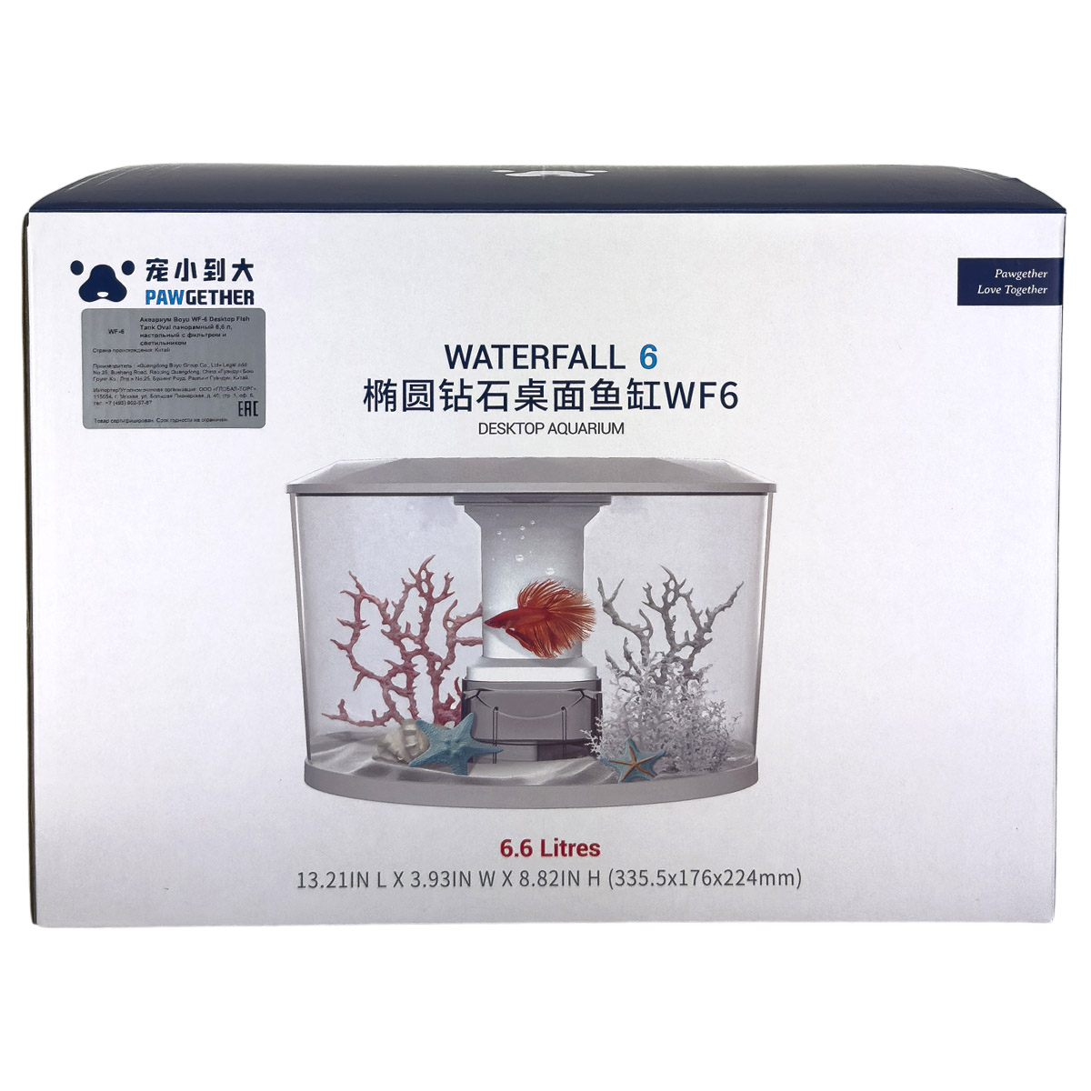 Панорамный аквариум Pawgether WF-6 объемом 6,6 литров, идеальное решение для любителей аквариумистики. Этот аквариум из высококачественного прозрачного пластика обеспечивает прекрасный обзор ваших водных питомцев с любой точки комнаты.
