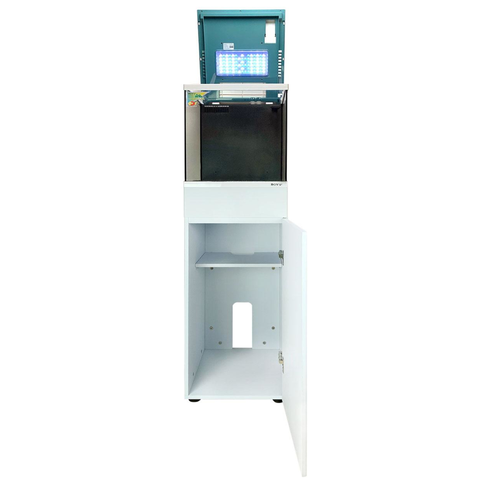 Тумба белая аквариума Boyu Intelligent MEZ-56. Прочная ровная столешница.Тумба оснащена шкафчиком, в котором удобно хранить корм, предметы для ухода за аквариумом и оборудование. Благородный стиль, подойдет под любой интерьер.
