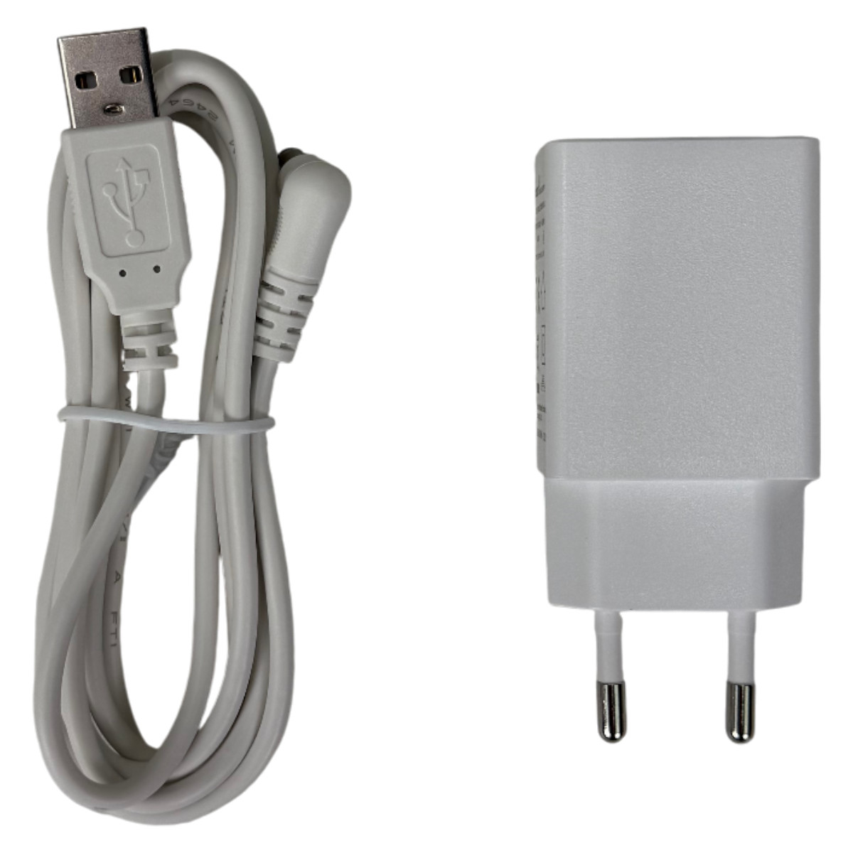 - Работает от сети или от батареек. Шнур USB (150 см) с адаптером и 3 батарейки D (батарейки в комплектацию не входят). При питании от батареек индикатор заряда может колебаться.