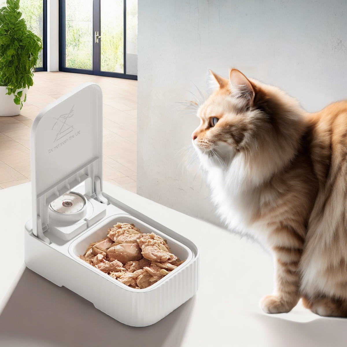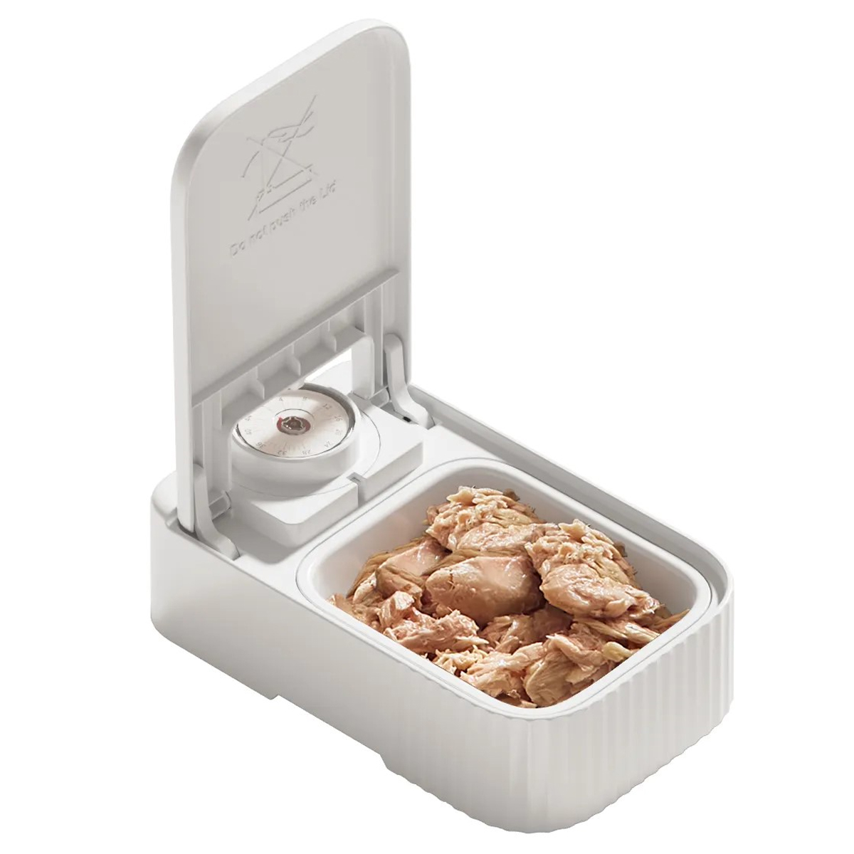 Petzengo PF22 Solo - автоматическая кормушка для однократного кормления влажным или сухим кормом, на 1 порцию 350 мл, которая обеспечит питомца свежей едой в заданное вами время. Питание от 1 батарейки АА.