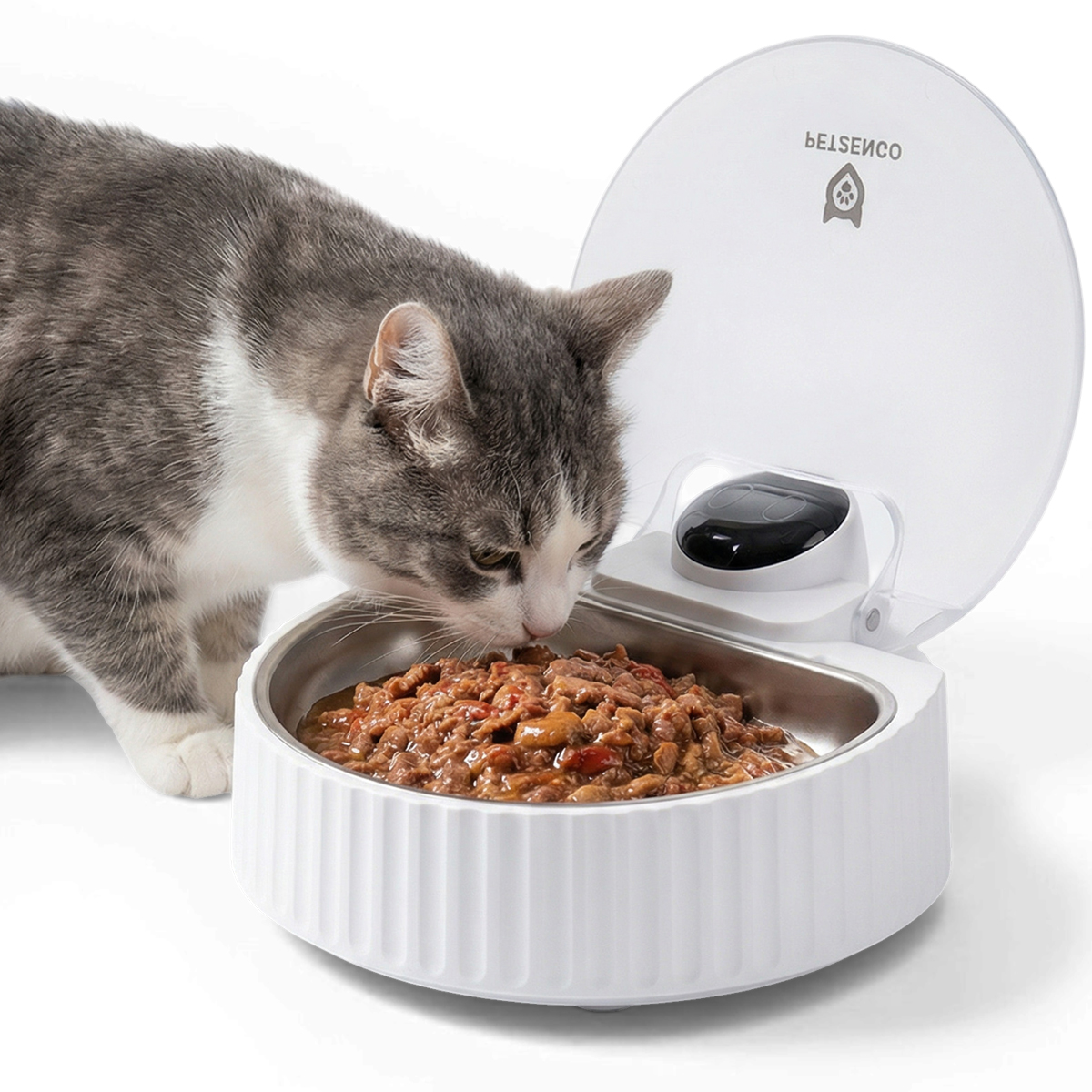 Автоматическая кормушка Petzengo PF25-W с таймером, датчиком движения и миской из нержавеющей стали 350 мл с Wi-Fi управлением через приложение Smart Home. Имеет, кроме таймера, сенсорный режим, когда крышка автоматически открывается, как только ваш питомец подходит к кормушке, и закрывается после кормления (20 сек, время настраивается), надёжно защищая корм от пыли, насекомых и внешних загрязнений. В режиме кормления по таймеру функция автоматического открывания крышки отключается.