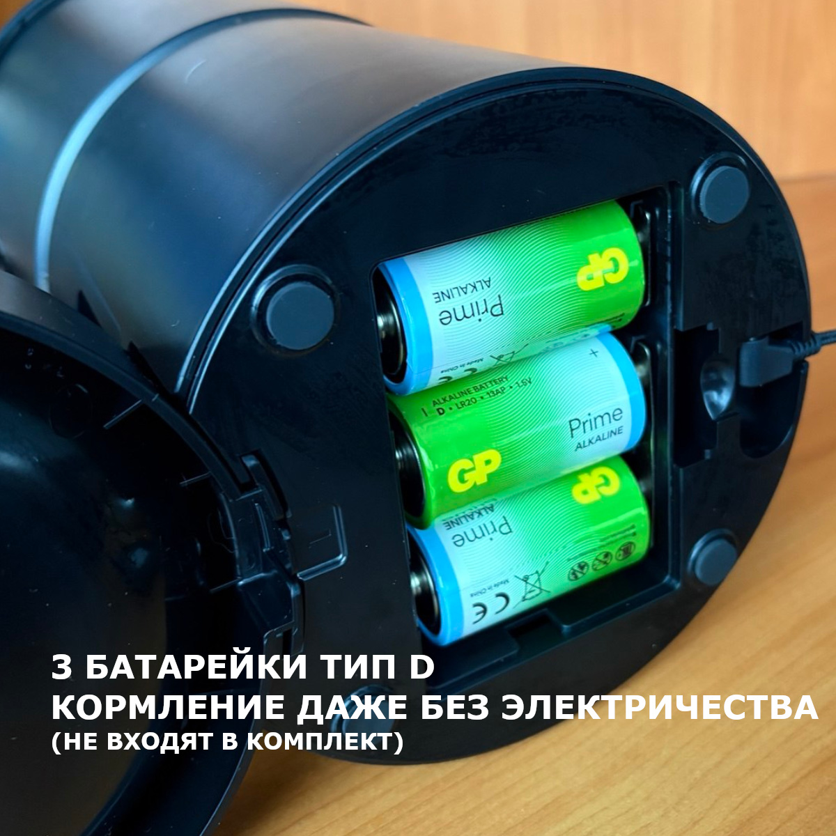 - Двойная система питания: Работает от сети (USB-адаптер в комплекте) и от 3 батареек типа D для резервного питания (не входят в комплект и обеспечивают не только резервное питание, но и могут работать с Wi-Fi для управления). Питомец будет накормлен даже без электричества.