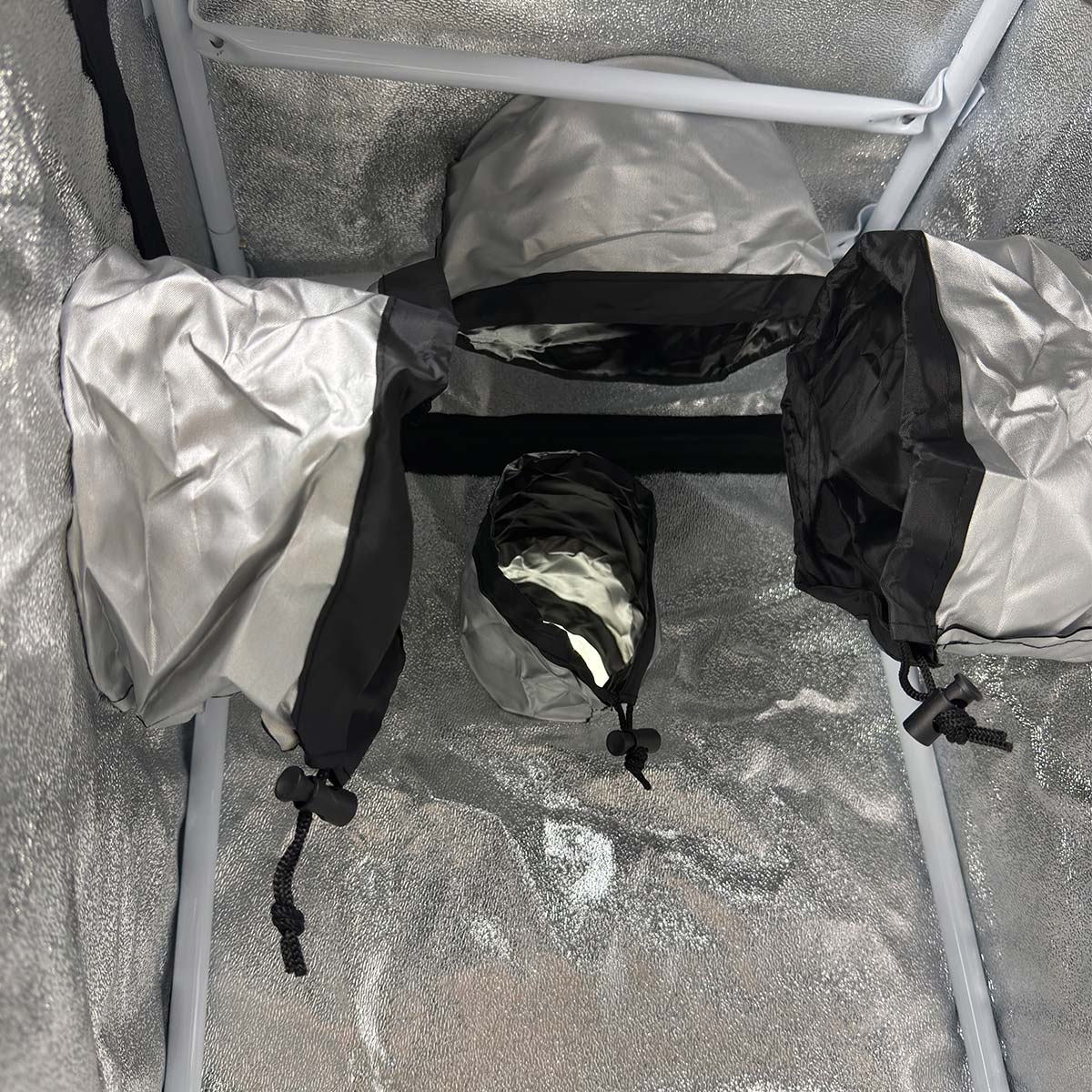 - Материал Оксфорд 600D. Нетоксичная ткань из серебристого майлара, металлизированной плёнки, отличается высокой прочностью на растяжение и высокой отражающей способностью.
