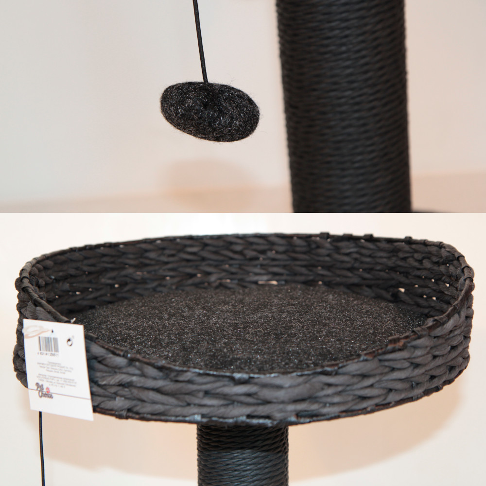 Когтеточка для кошек в черном цвете сочетает в себе стиль и минимализм. Представляет собой прочное основание, на котором крепится столбик, покрытый сизалем. Сизаль является прекрасным покрытием, позволяющим кошке стачивать когти.