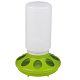 Комплект из двух кормушек. Пластиковые бункерные кормушки для кур и цыплят вместимостью 1 кг, с полупрозрачным бункером, который позволяет следить за уровнем корма внутри. Части соединяются путем завинчивания. Верхняя часть с круглыми отверстиями является съемной и предназначена для предотвращения потерь корма.