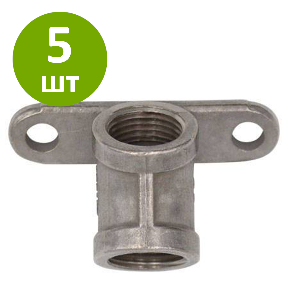 Крепление настенное для ниппельной поилки, угол наклона 45 градусов, из нержавеющей стали. Нижнее ответвление с внутренней резьбой диаметром 1/2 дюйма, верхнее 1/2 дюйма. Комплект 5 шт.