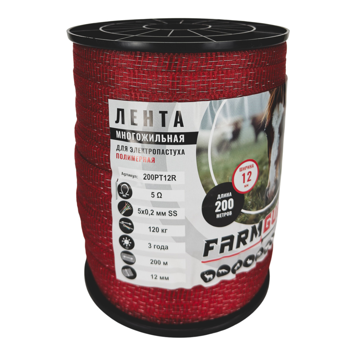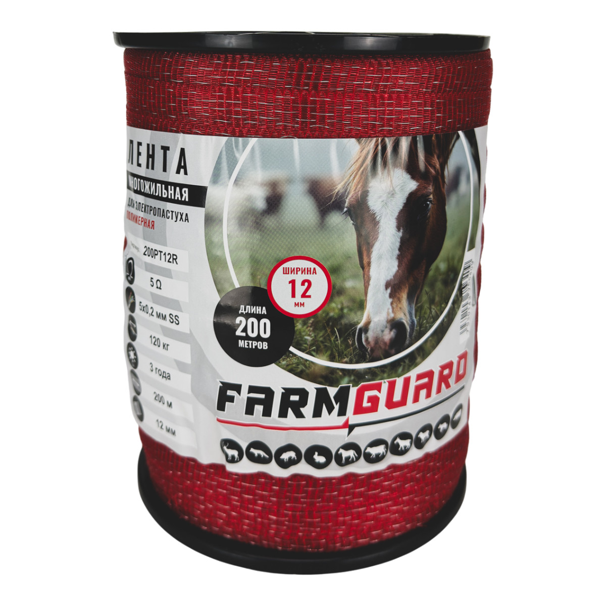 Лента для электропастуха полимерная шириной 12 мм и длиной 200 метров идеально подходит для ограждения пастбищ и выгона животных. Лента FarmGuard изготовлена из прочного полиэтилена с вплетёнными пятью проводниками из нержавеющей стали диаметром 0,2 мм, что обеспечивает отличную проводимость и стойкость к коррозии.