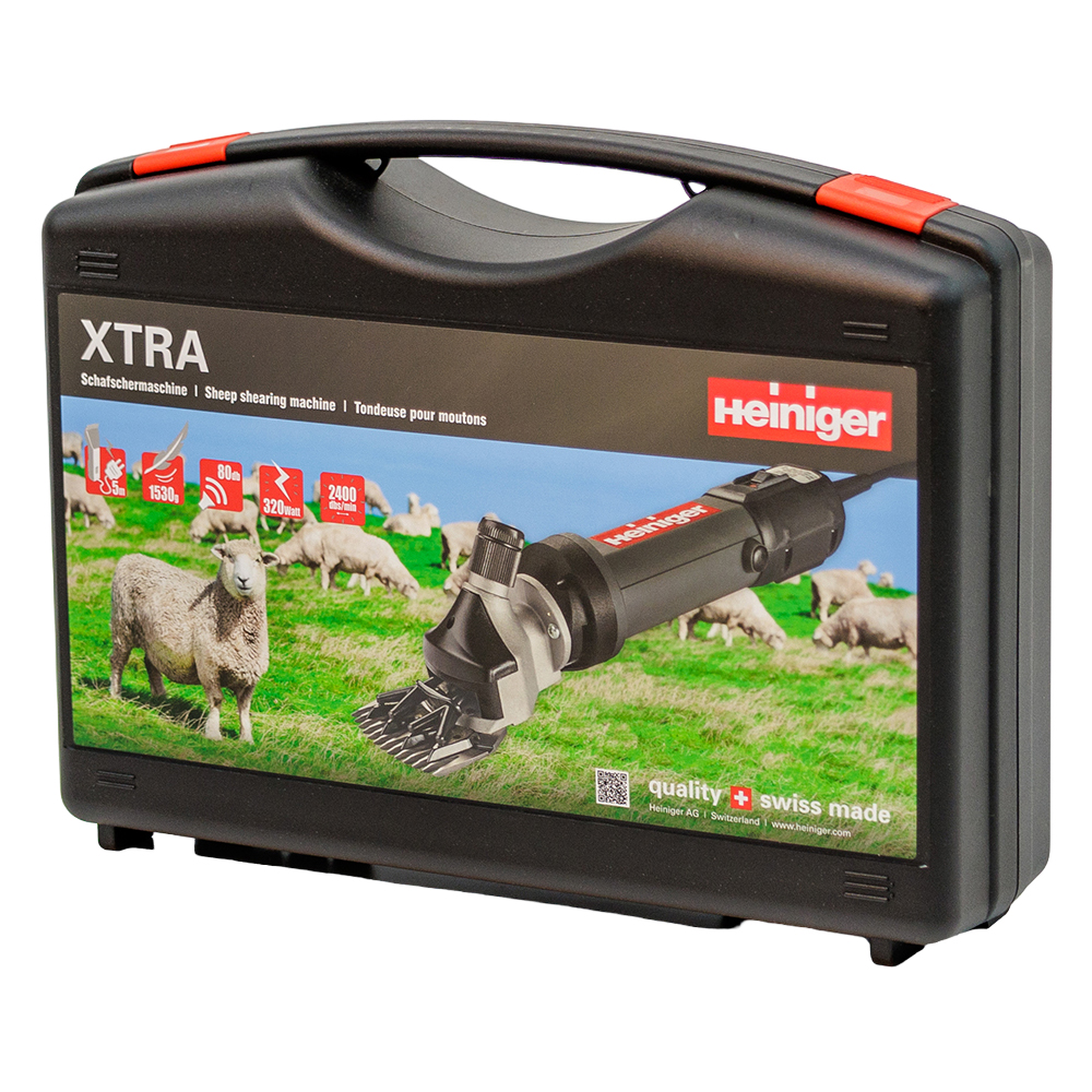 Машинка для стрижки овец и коз HEINIGER XTRA - мощная стригальная машинка оснащена запатентованным устройством с плавающей вилкой, которое обеспечивает равномерное давление на гребенку и нож, уменьшая этим усилие и повышая срок эксплуатации гребенки и ножа до 50%.