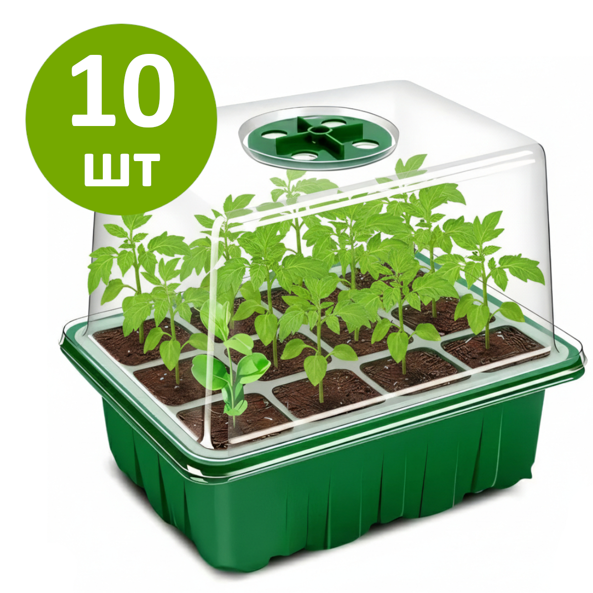 Этот мини парник с 12 ячейками и прозрачной крышкой от HobbyFarm включает в себя 10 лотков и специально разработан для ускорения прорастания семян благодаря продуманной конструкции. Пластиковые лотки можно использовать многократно. Благодаря гибкой конструкции, каждый саженец легко извлекается из лотка, не повреждая соседние растения. А прозрачная крышка позволяет следить за ростом рассады и уровнем влажности. Система вентиляции и уникальный купольный переключатель с 4 отверстиями создают оптимальный микроклимат, имитируя условия парника. Это способствует лучшей всхожести семян и активному росту рассады.