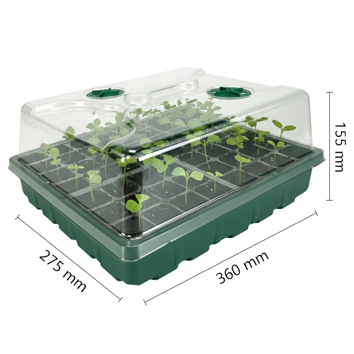 Этот мини парник с 48 ячейками и прозрачной крышкой от HobbyFarm включает в себя 20 лотков и специально разработан для ускорения прорастания семян благодаря продуманной конструкции. Пластиковые лотки можно использовать многократно. Благодаря гибкой конструкции, каждый саженец легко извлекается из лотка, не повреждая соседние растения. А прозрачная крышка позволяет следить за ростом рассады и уровнем влажности. Система вентиляции и 2 уникальных купольных переключателей с 4 отверстиями создают оптимальный микроклимат, имитируя условия парника. Это способствует лучшей всхожести семян и активному росту рассады.