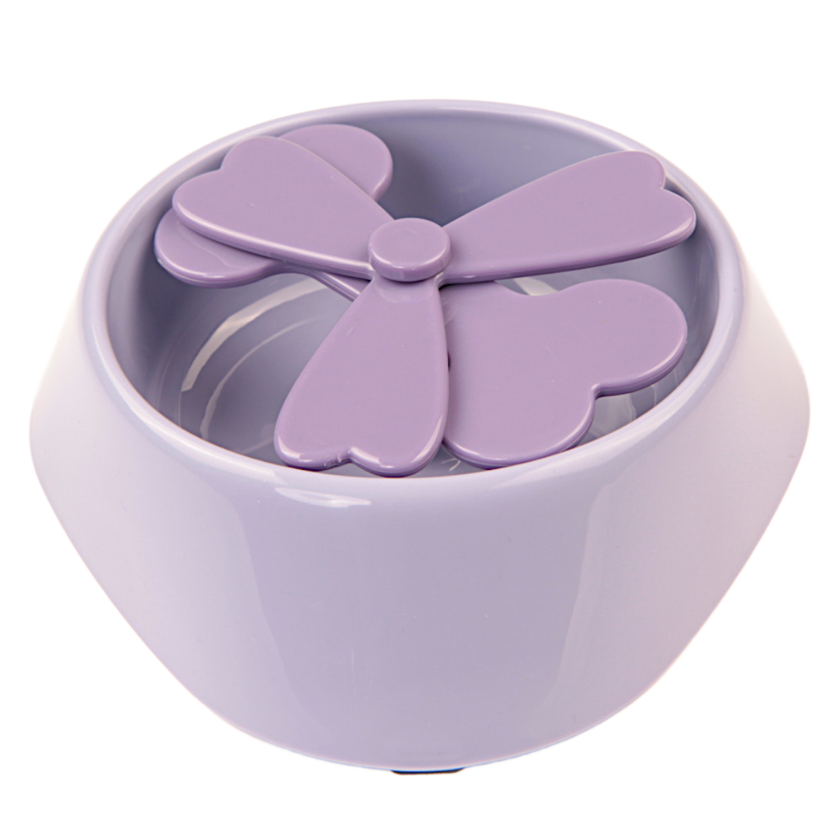 Фиолетовая игровая миска для медленного кормления животных, 15.5x4.7 см, 350 мл. Специальная форма значительно снижает заглатывание корма. Внутренние вставки в виде вентилятора позволяют принимать пищу и играть одновременно. Специальная форма позволяет с легкостью мыть, передвигать и наполнять миску. Нескользящий прорезиненный ободок на дне миски способствует устойчивости. Пищевой нетоксичный пластик. Легко разбирается для мытья.