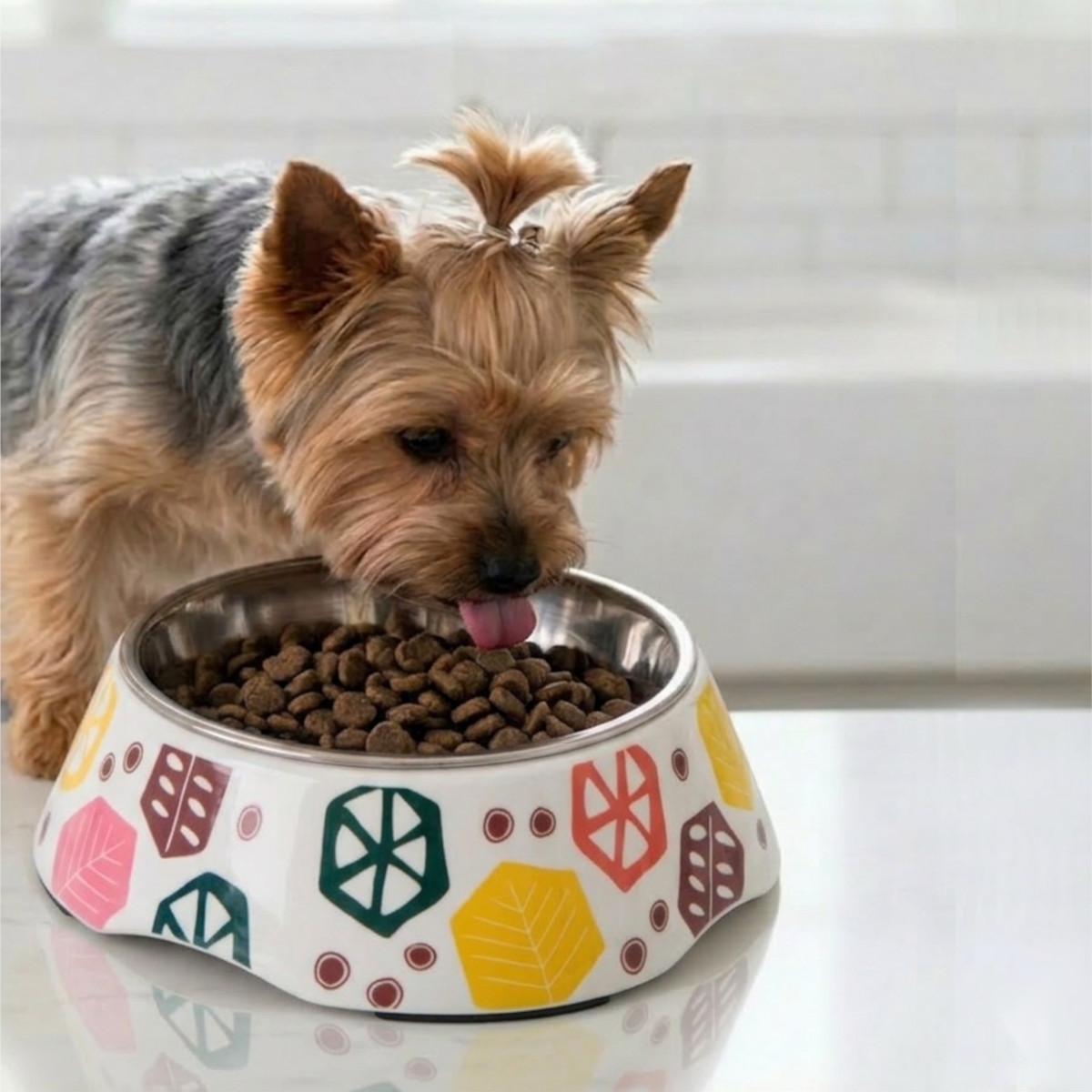 Меламиновая миска со вставкой из нержавеющей стали для собак и кошек, 11x16x4.8 см, 180 мл, рисунок геометрия. Блюдце из нержавеющей стали вынимается, что очень удобно при мытье миски. Подходит как для воды, так и для корма, специальные ножки с резиновыми накладками предупреждают скольжение. Миска устойчивая, благодаря расширяющемуся основанию.
