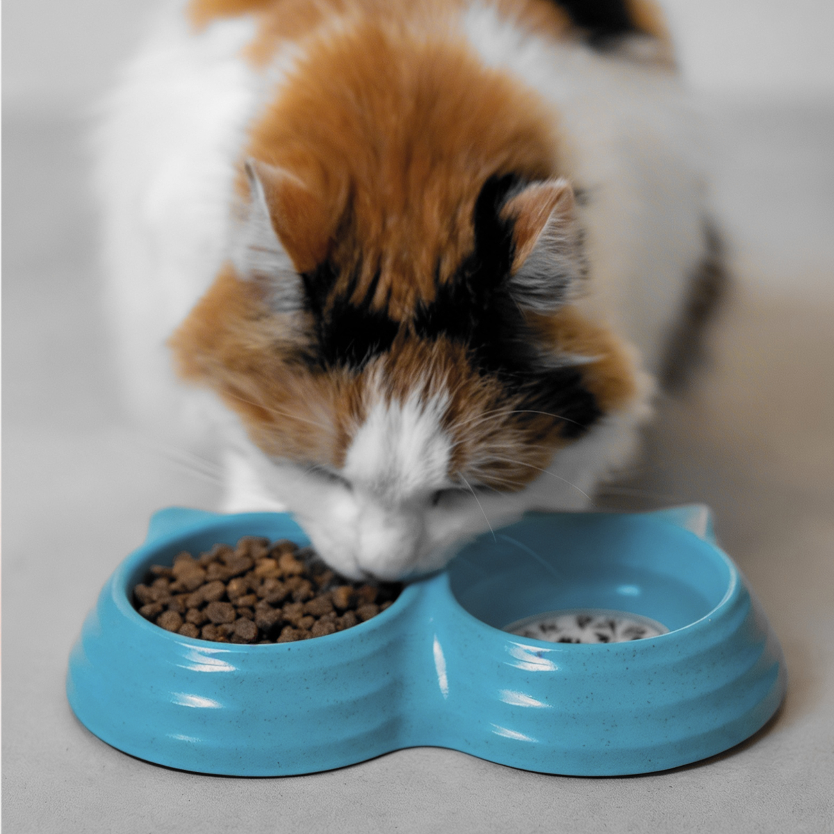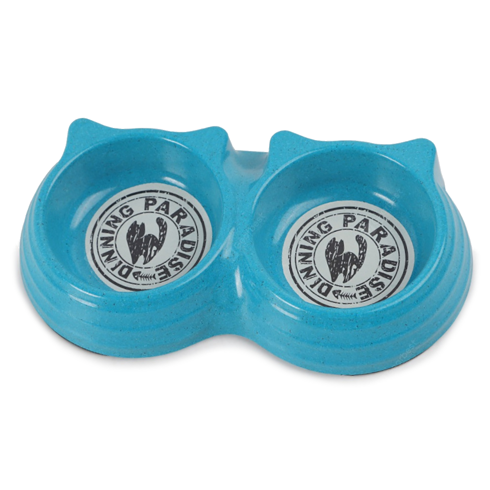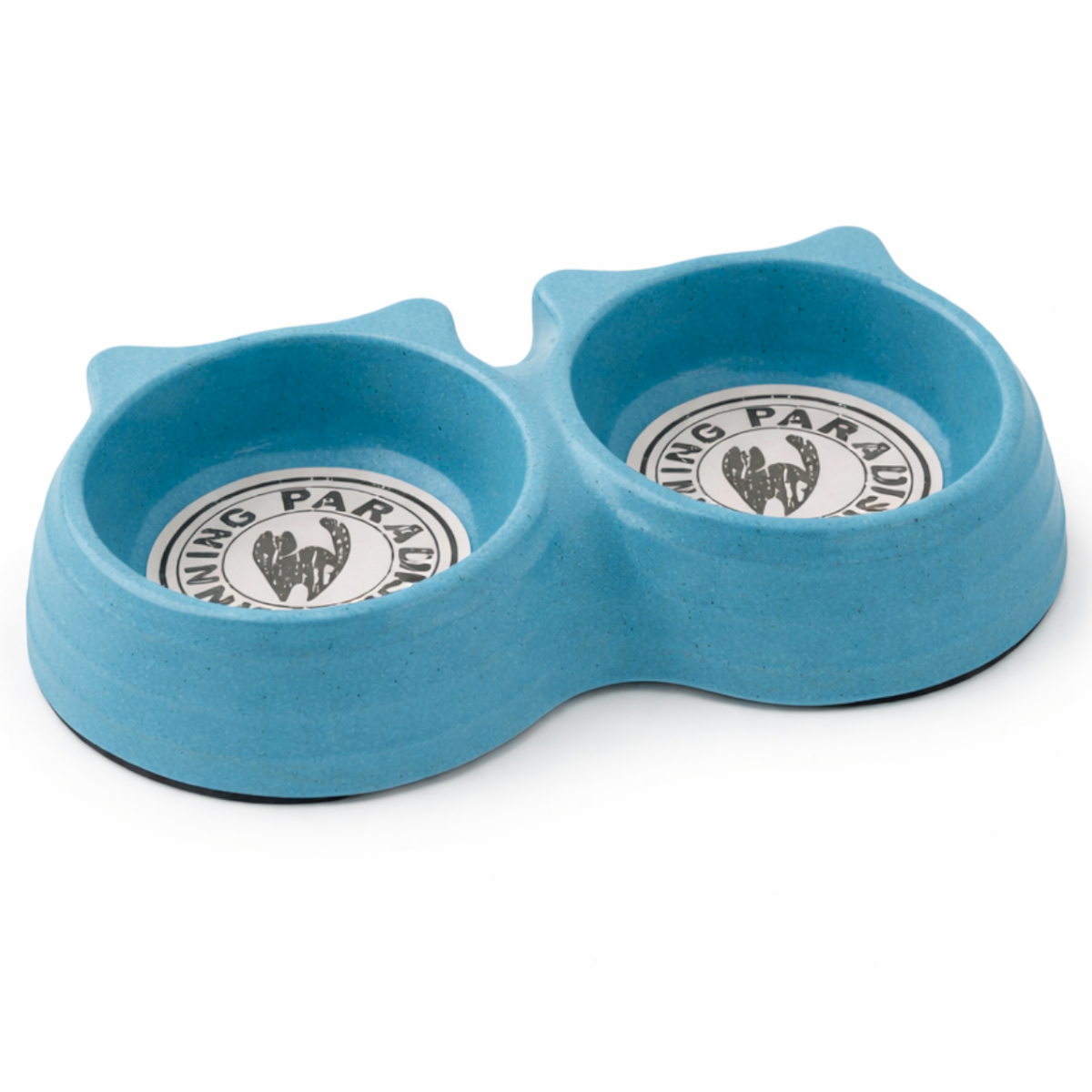 Бамбуковая двойная миска для кошек и собак, размер 23x12.5x4 см, 150+150 мл, цвет: голубой.