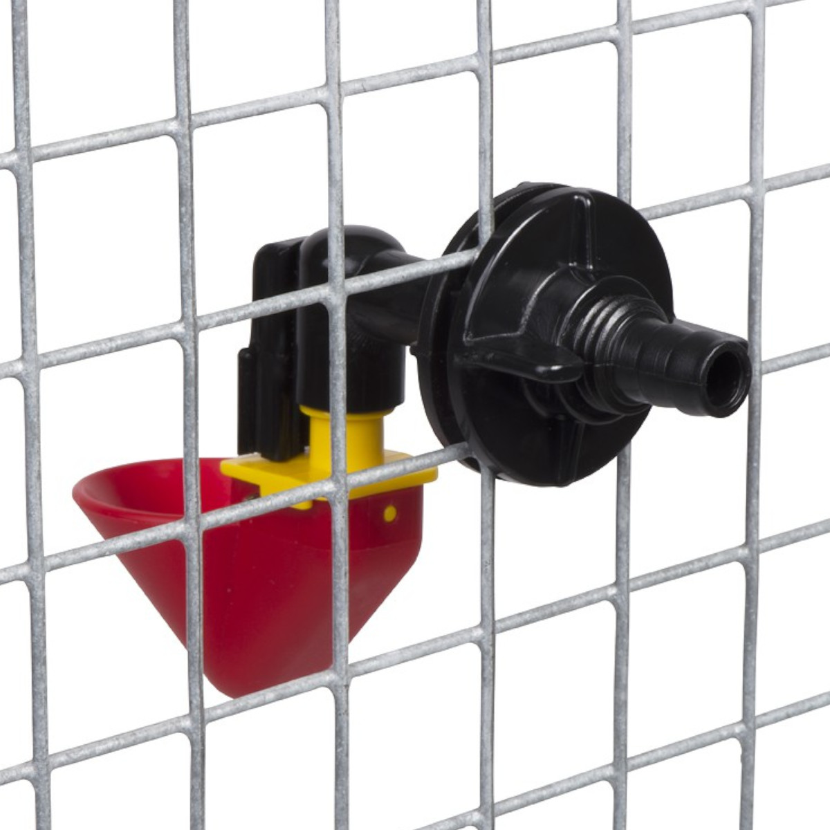 Поилка чашечная голландского производства из качественного пластика с креплением на сетку, для мелкой сельскохозяйственной птицы. Специальный механизм поддерживает постоянный уровень жидкости в поилке, обеспечивая птиц чистой питьевой водой.