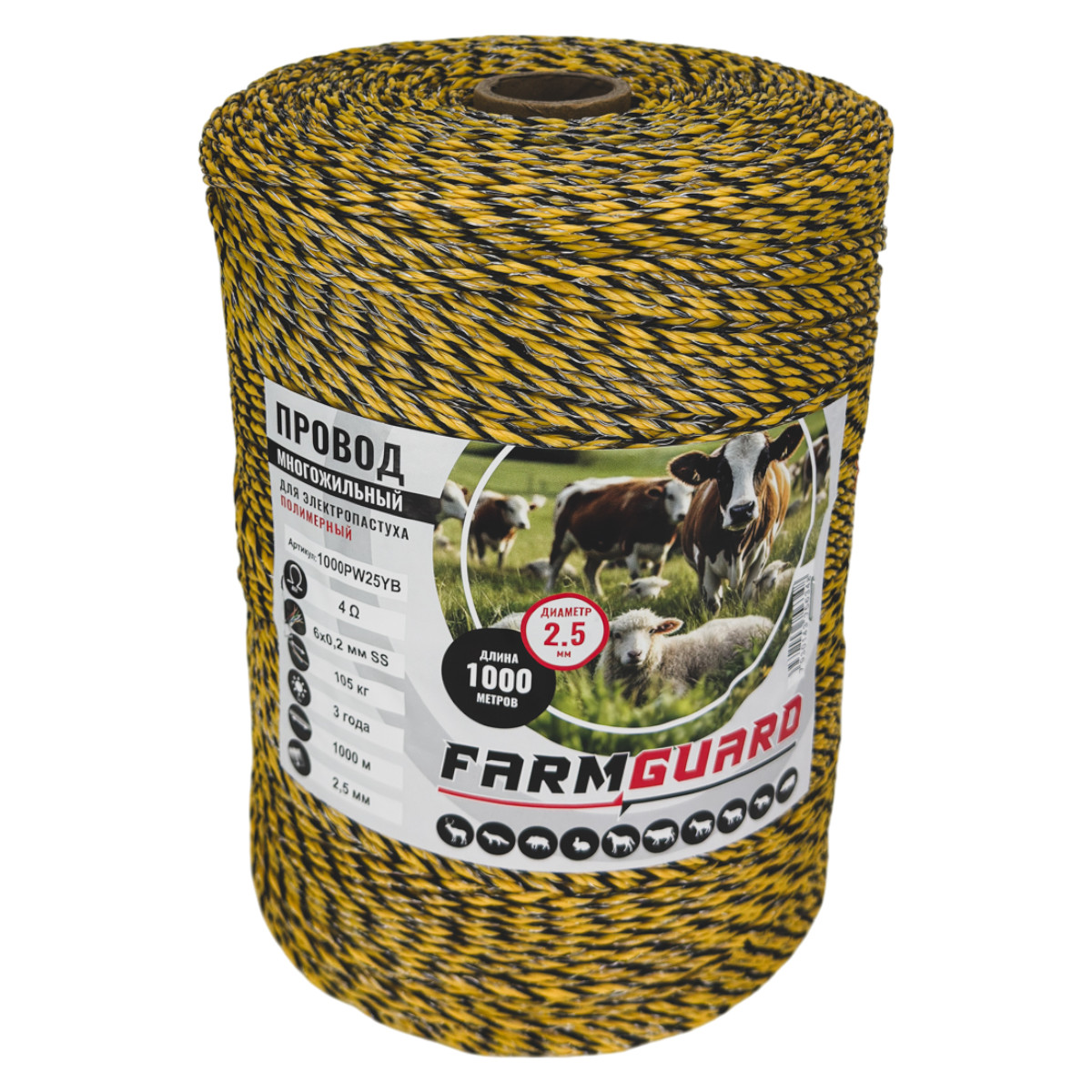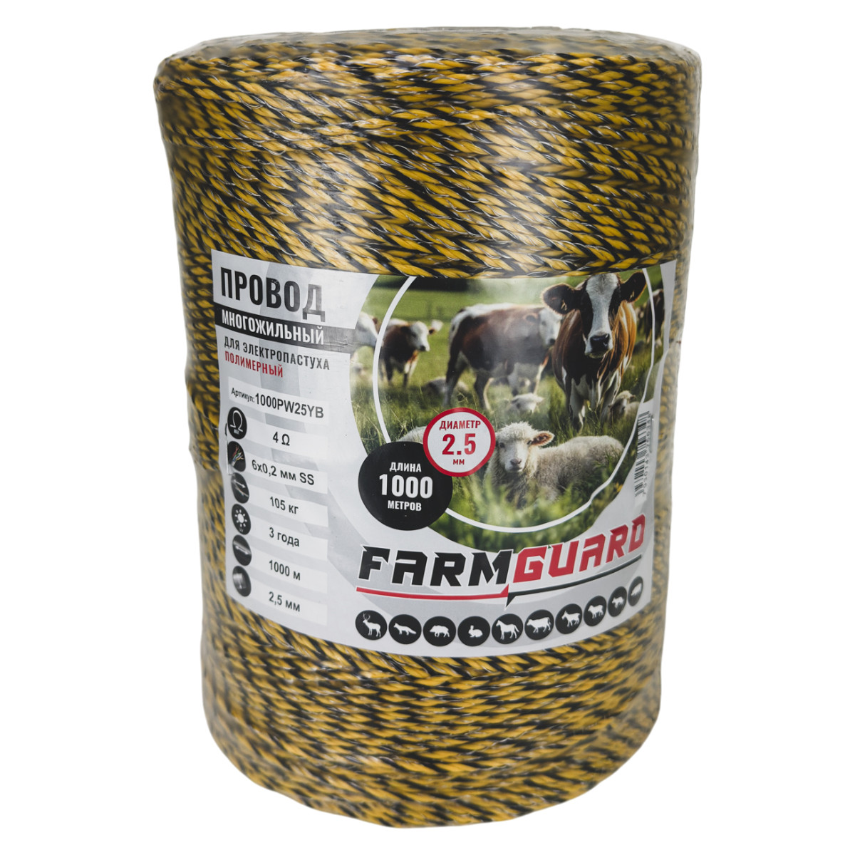 Полимерный провод для электропастуха диаметром 2,5 мм и длиной 1000 метров предназначен для создания надёжных электрических ограждений на пастбищах и фермерских хозяйствах. Шнур FarmGuard сплетён из прочного УФ-устойчивого полиэтилена, что обеспечивает долгий срок службы даже при постоянной эксплуатации на открытом воздухе. В конструкцию вплетены шесть проводников из нержавеющей стали диаметром 0,2 мм, которые обеспечивают необходимую проводимость электрического тока для эффективного воздействия на животных.