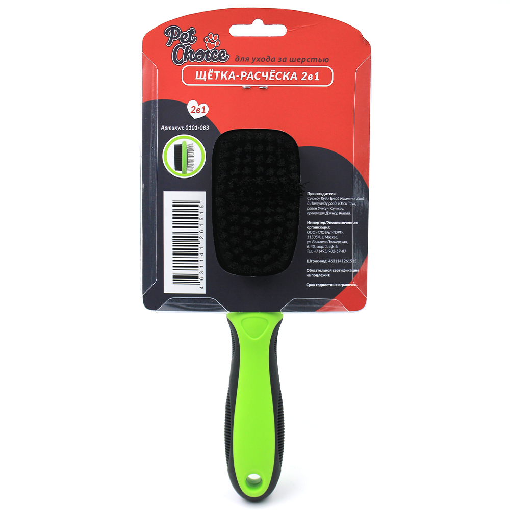 Двухсторонняя щетка для собак и кошек является популярной моделью среди владельцев и грумеров. Она позволяет тщательно ухаживать за шерстью. С одной стороны щетка имеет закругленные металлические зубья для защиты от повреждений кожи, с другой – мягкую щетину. Идеально подойдет для средне и длинношерстных домашних животных. Благодаря удобной ручке ее можно использовать длительный период.